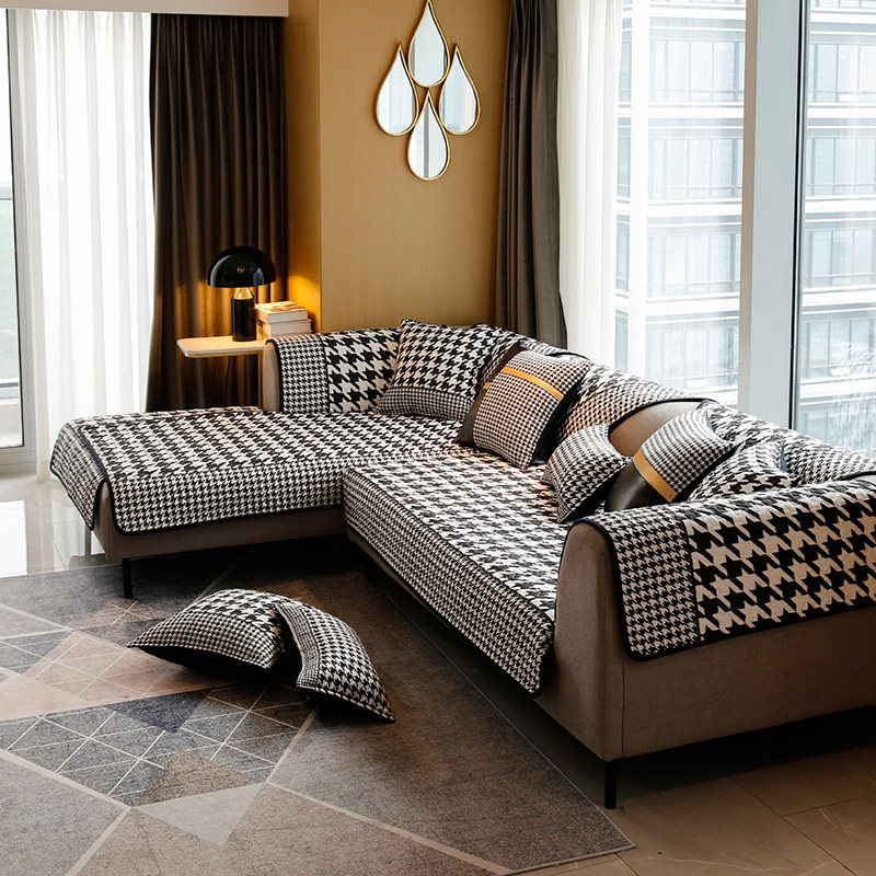 Minshun houndstooth sofa cushion four seasons light luxury non-slip sofa cover high-end Nordic modern winter sofa cushion