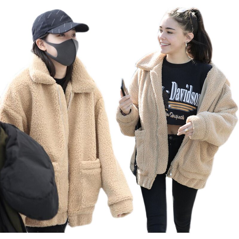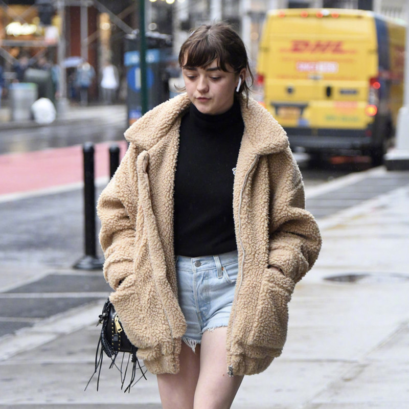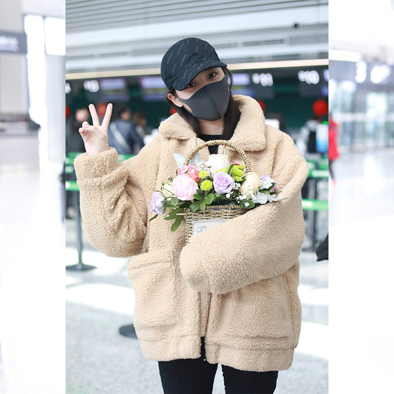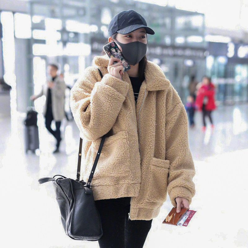 French maje 20 autumn and winter Lady wind goddess fan elegant lamb plush coat jacket jacket women