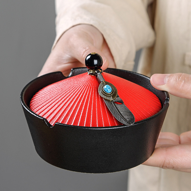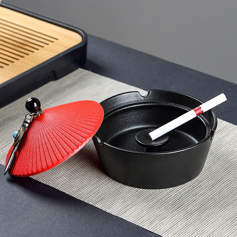A pint of official cap with lid Tobacco Ashtray Home Ceramic Individuality Trend Smoke Cylinder Office Anti-Fly Ash Tobacco Cylinder Gift Box Dress