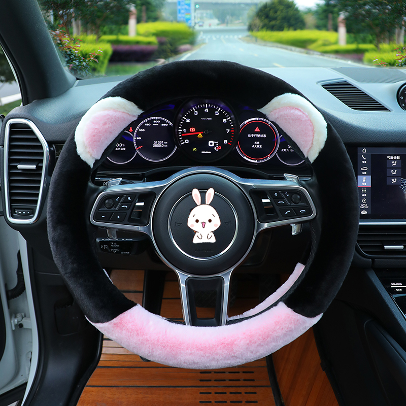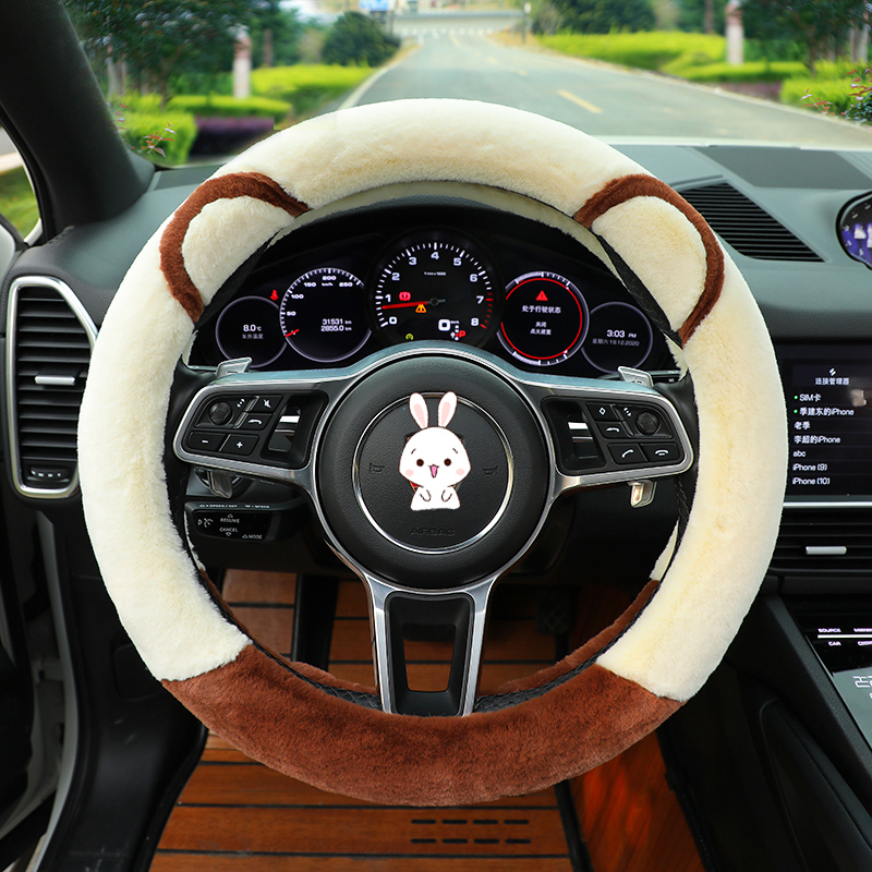 Car Steering Wheel Sleeve Ladies Winter Plush Korea Cute Handlebars Cover Protective Sleeves Anti Slip Sweat All Season Universal