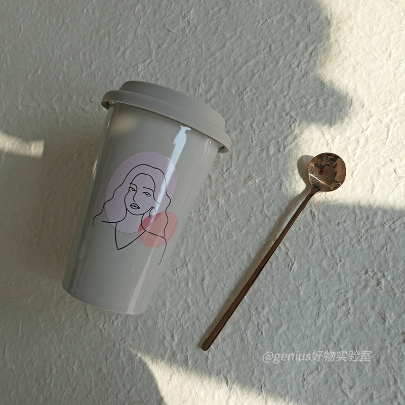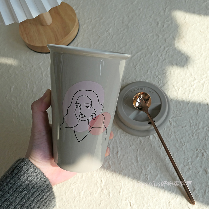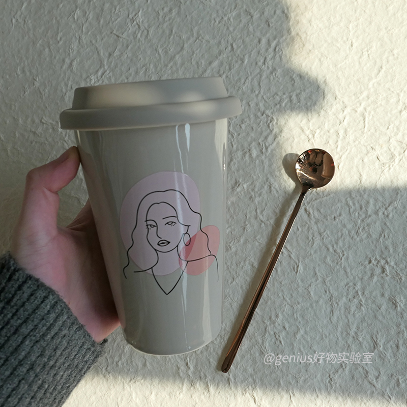 Original design High-value girl heart ins wind Household ceramic with lid with spoon straw Coffee handy mug