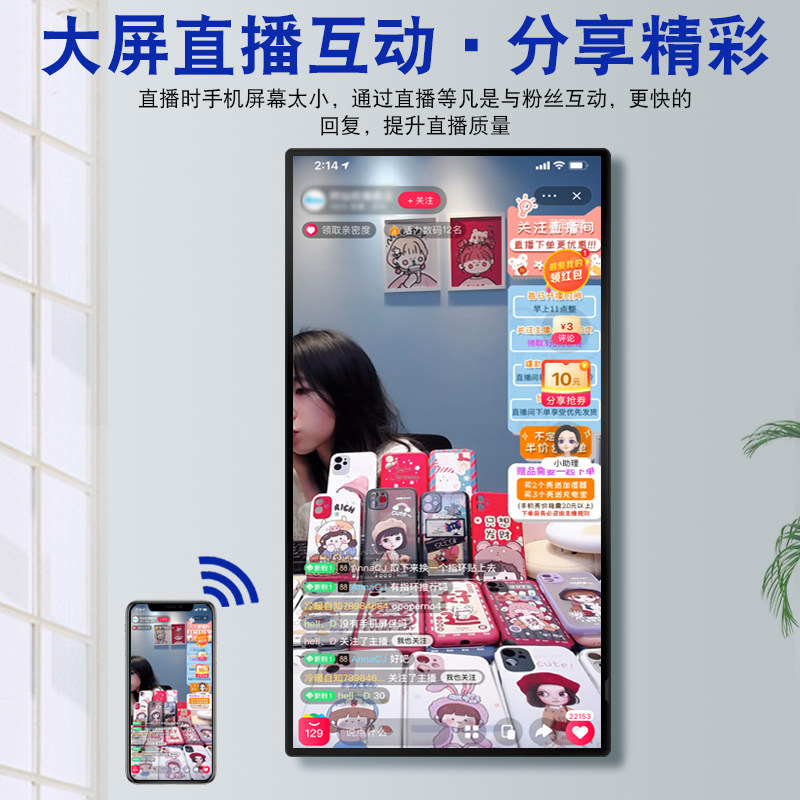 Magic 32 40 43 50 55 60 65 inch mobile phone live wireless projection Same screen machine shake sound fast hand anchor net red interactive vertical screen TV display Computer projection