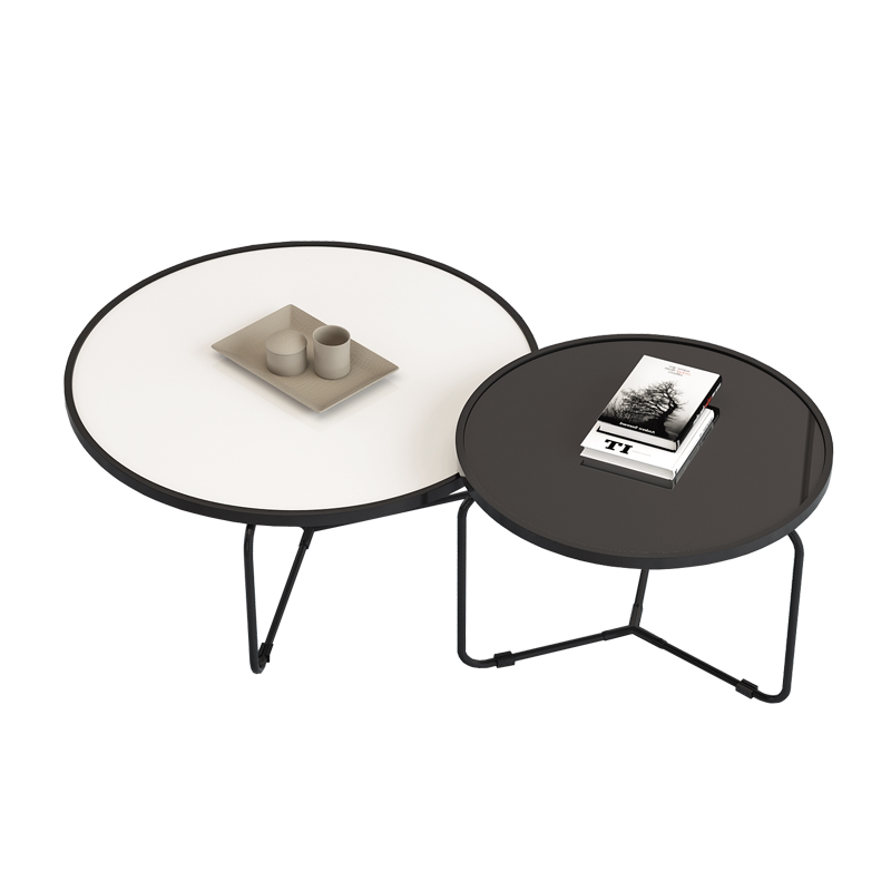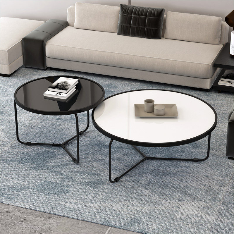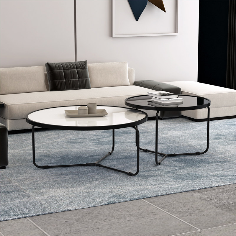 Minimalist modern tempered glass tea table marble tattooed livingroom small family light lavish red round tea table combination