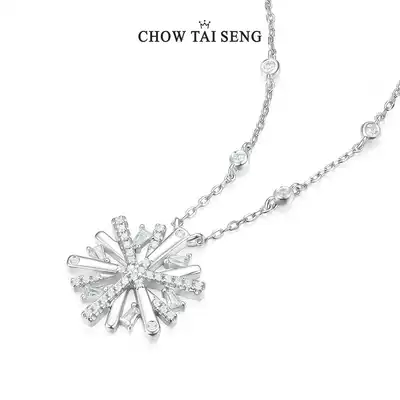 Zhou Dai Sheng snowflake necklace female sterling silver light luxury niche design choker flower neck silver jewelry birthday gift