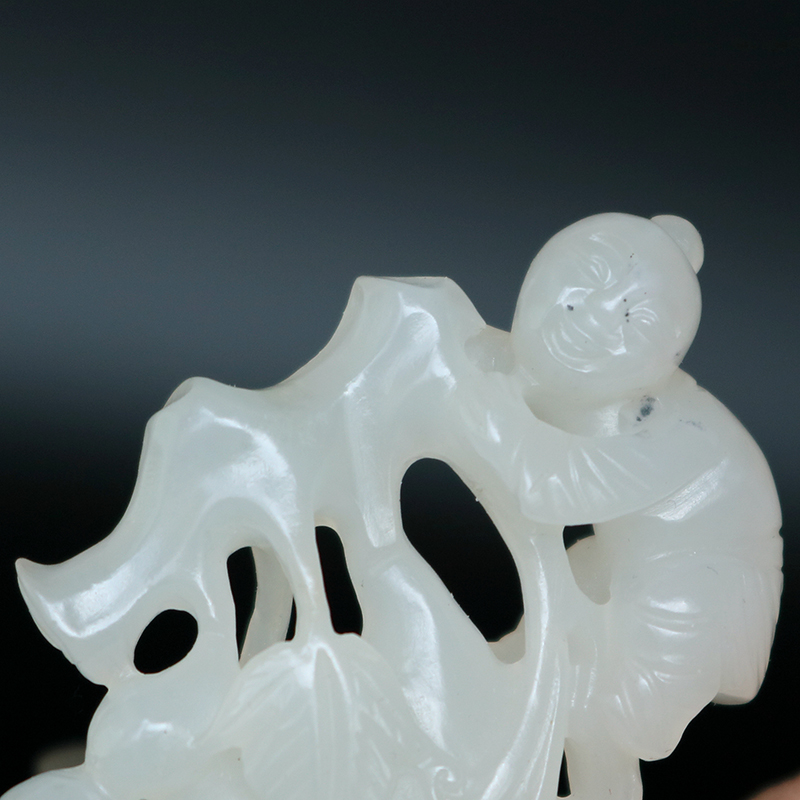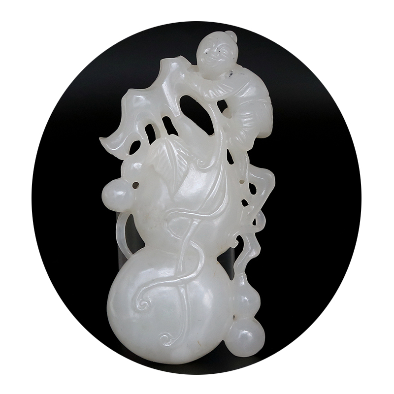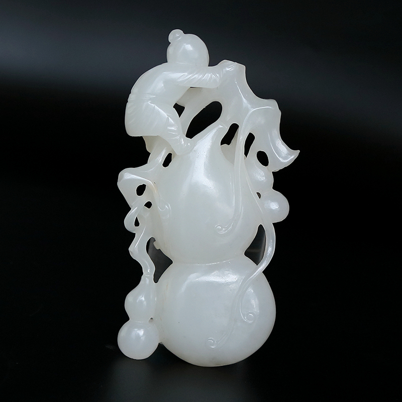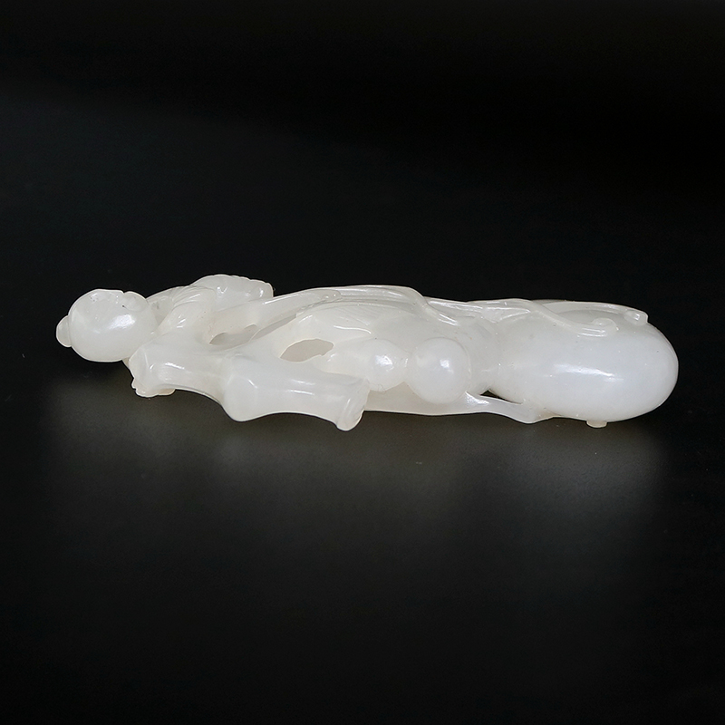 (National Inspection Appraisal) 1st level white and field jade with green flower hollowed-out sculpted Fullman handlebar piece auction C3477