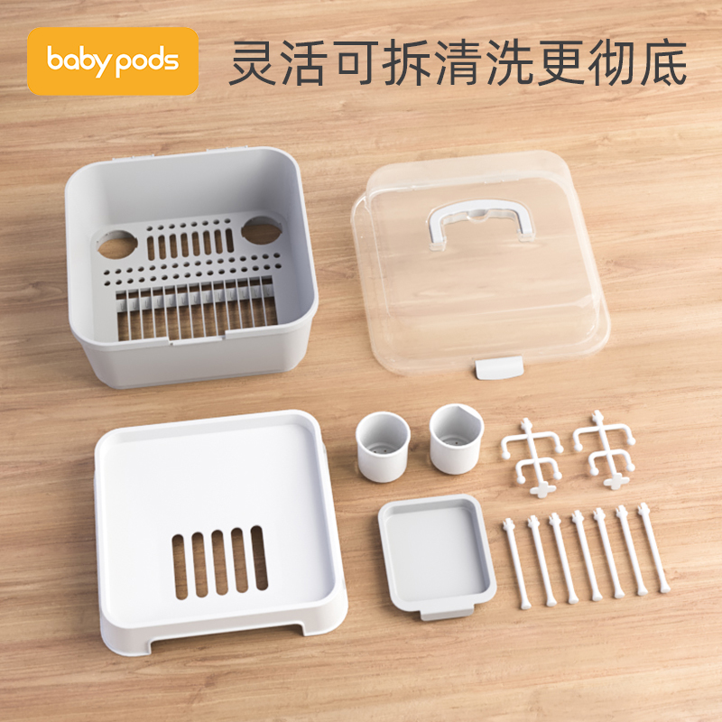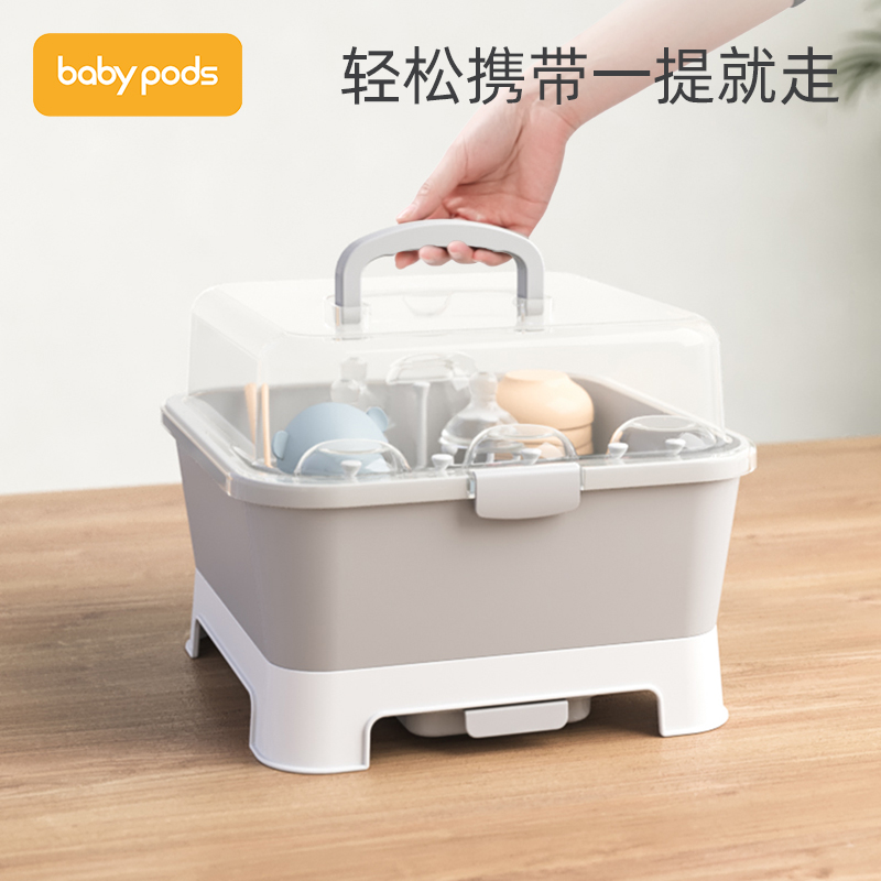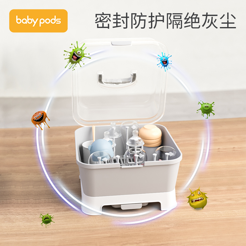 Babypods Kids Portable Bottle Storage Box Drain Rack Dry Baby Baby Supplies Dustproof Storage Box