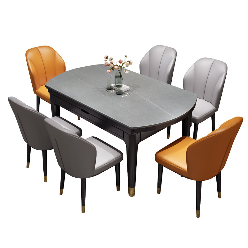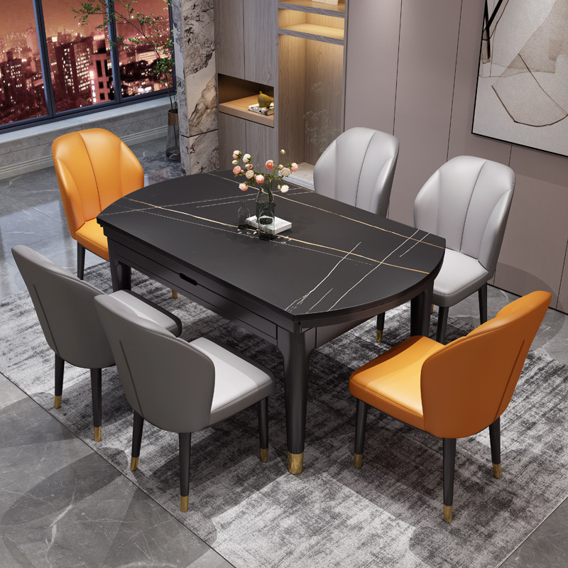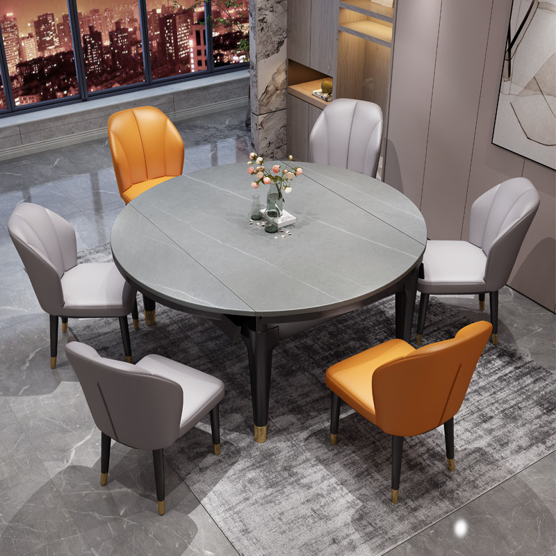 Light extravagant rock plate dining table and chairs combined modern minima home small family type square-round bi-functional solid wood telescopic dining table