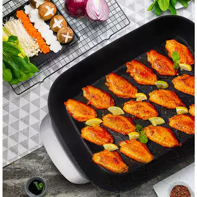 Oaks grilled fish pot multi-function electric hot pot Household electric oven grilled shabu-shabu one pot Non-stick barbecue pot Electric wok