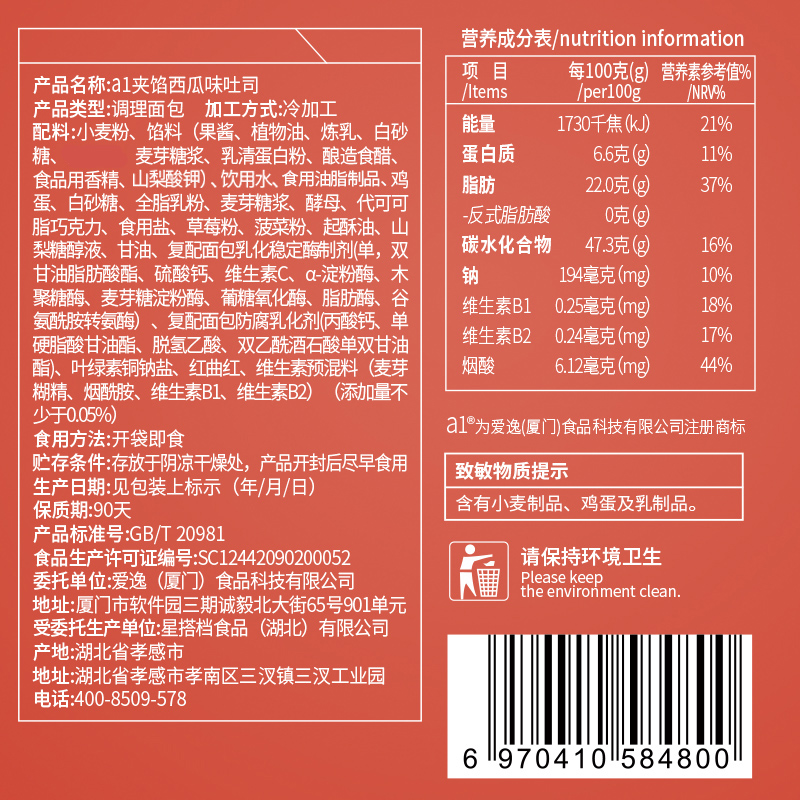 a1 Watermelon Toast Bread 480g Whole Boxes Children Nutrition Breakfast Cake Refreshment Casual Snack Sandwich Toast