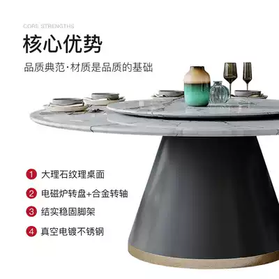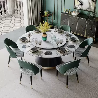 Nordic marble round dining table large and small household with turntable dining table multifunctional induction cooker table and chair combination