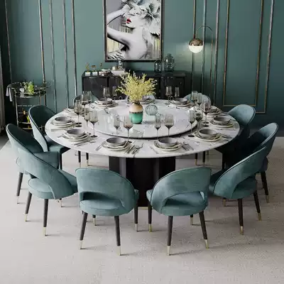 Light luxury marble round table with turntable Rotatable dining table and chair combination size apartment 10 people round dining table Household