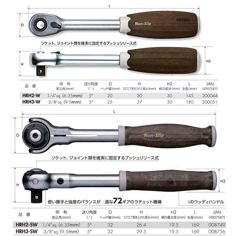 HRH2-W non-slip ratchet handle 1 4HRH3-W non-slip ratchet handle 3 8HRH2-SW anti-slip universal sleeve handle 1 4HRH3-SW anti-slip universal sleeve