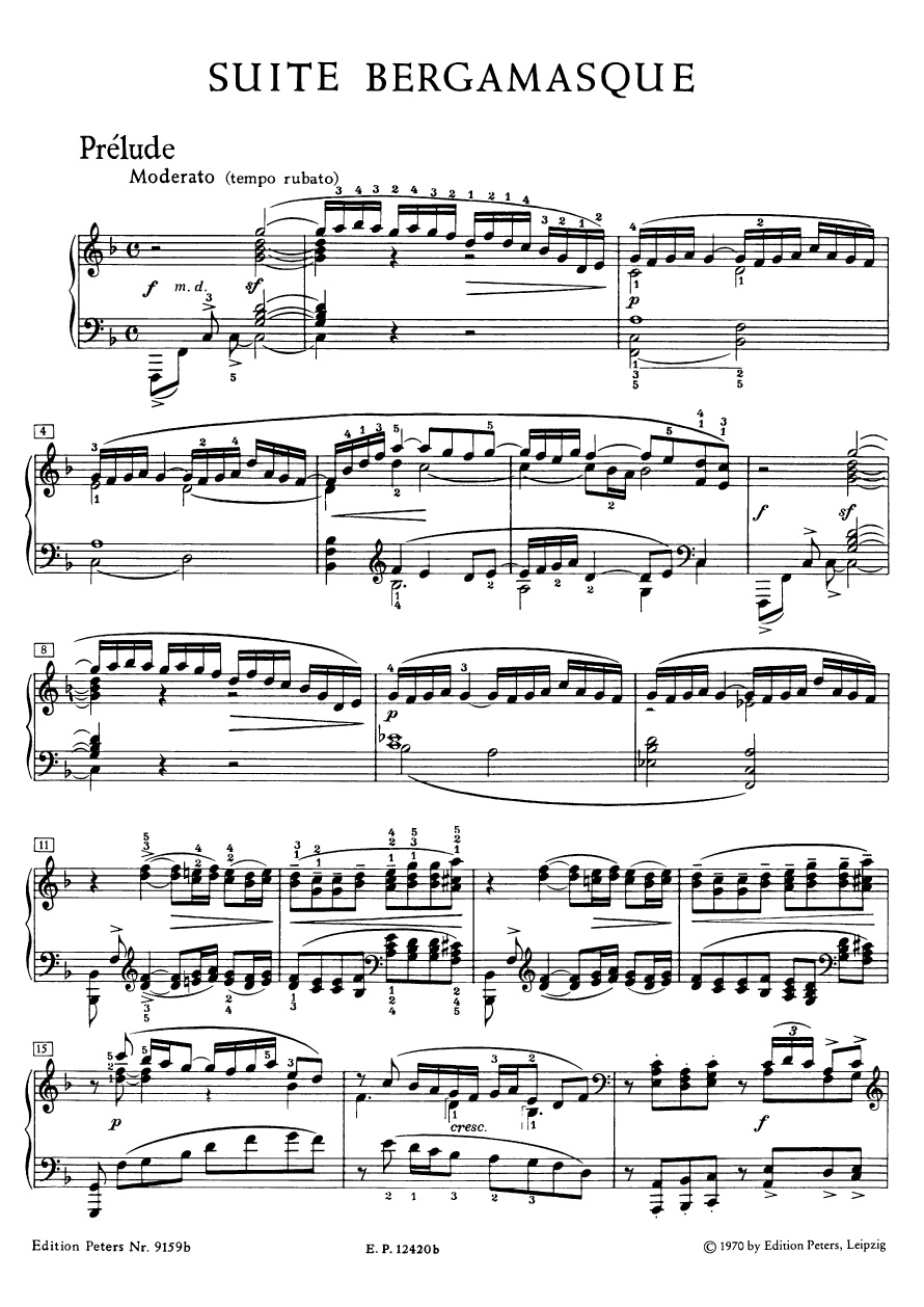 Debussy Bergamo Suite Bergamo Suite piano score with fingering a total of 4 original versions - 21 pages