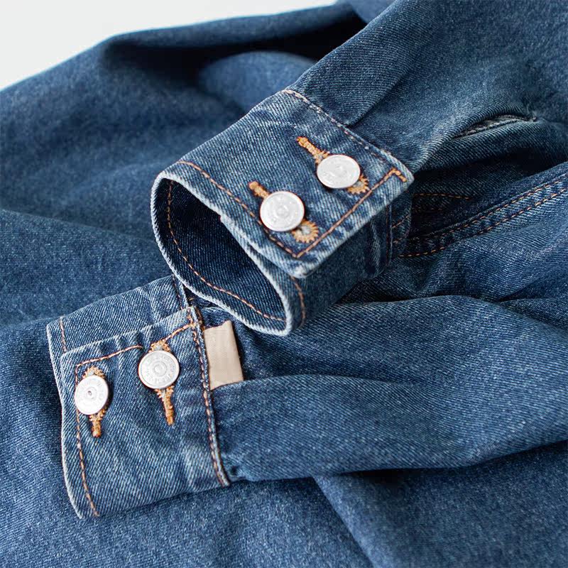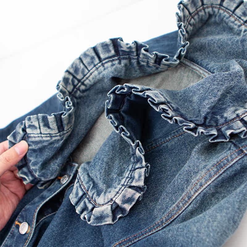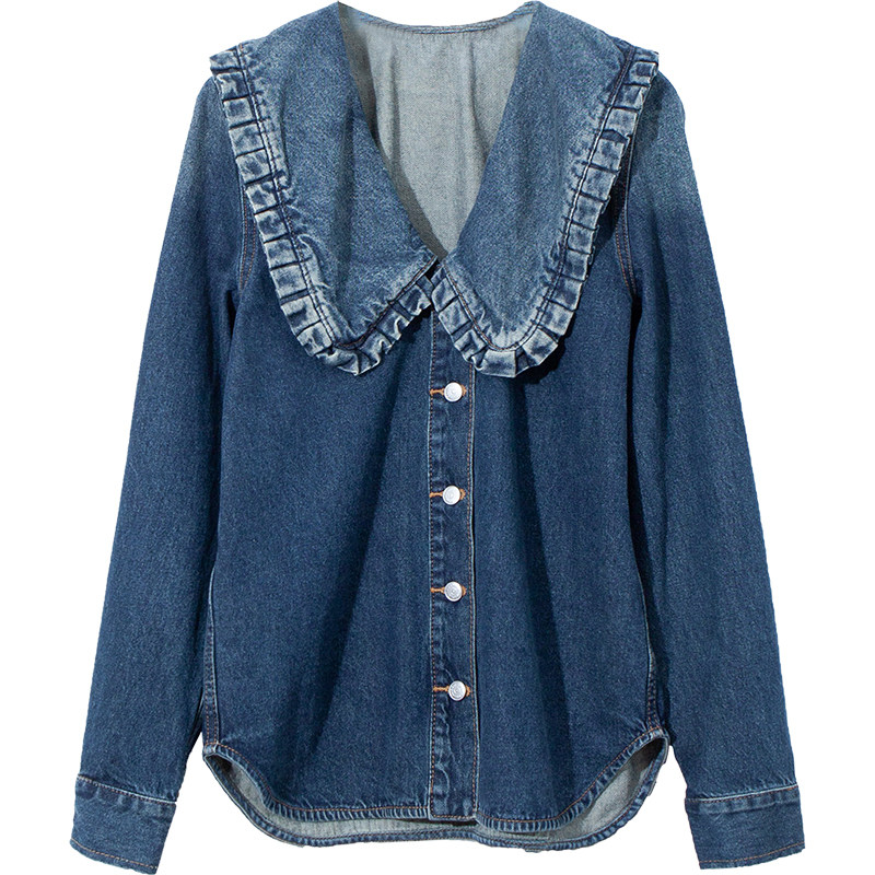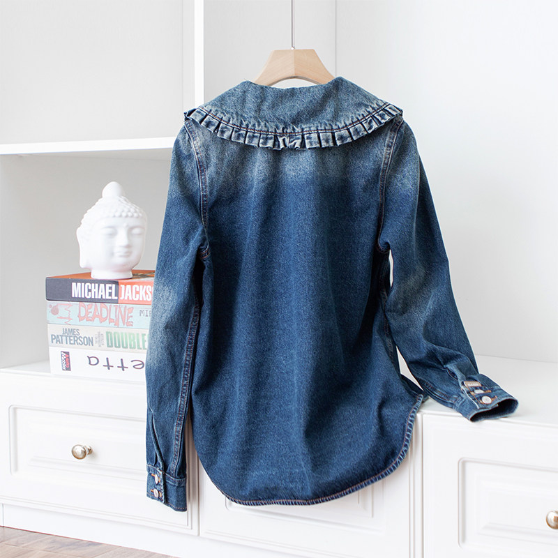 Hyperbolic styling sensation agaric lace large flap retro-washed for old blue long sleeve denim shirt female q