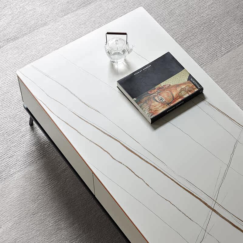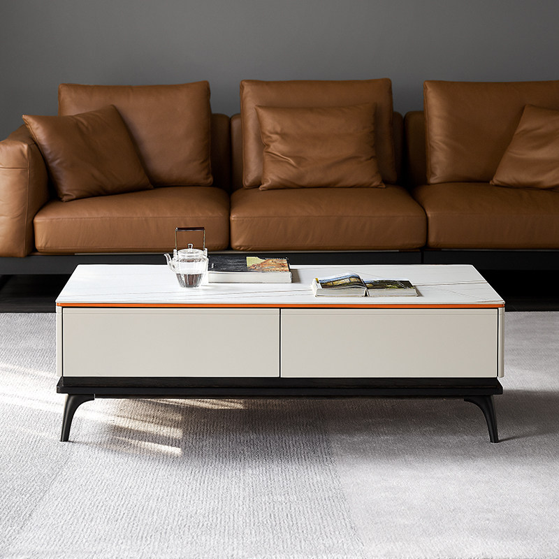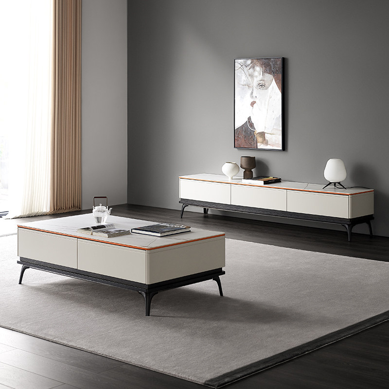 Yichao Rock Slab Coffee Table TV Cabinet Modern Simple Combination Large and Small House Type Solid Wood Nordic Marble Floor Cabinet