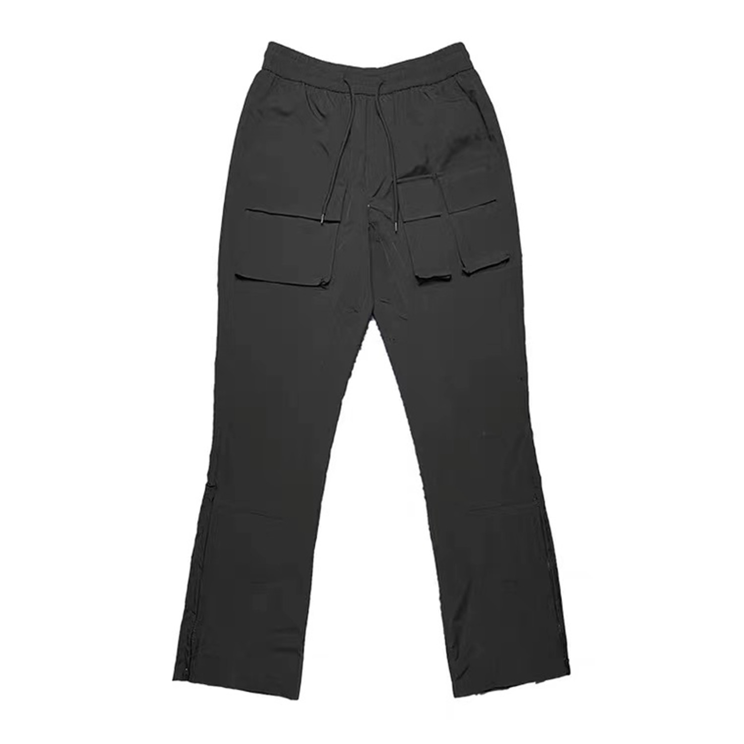 MT99 high street vibe function multi pocket micro horn overalls side zipper Black trend casual trousers men and women