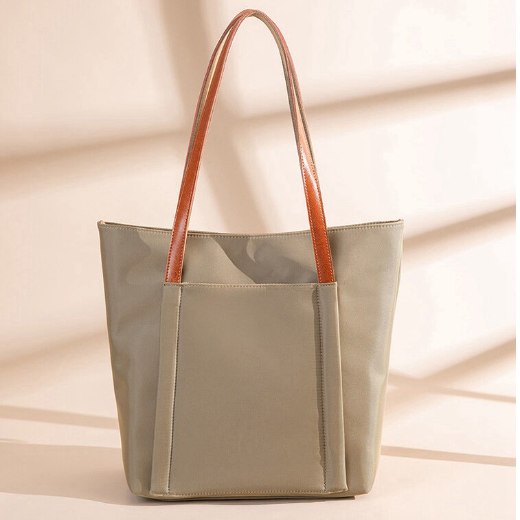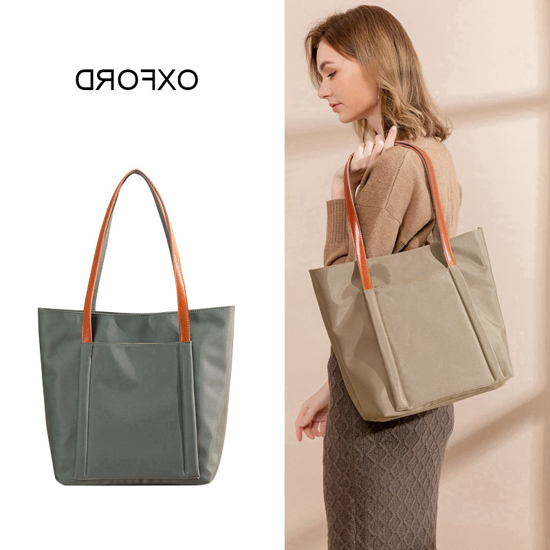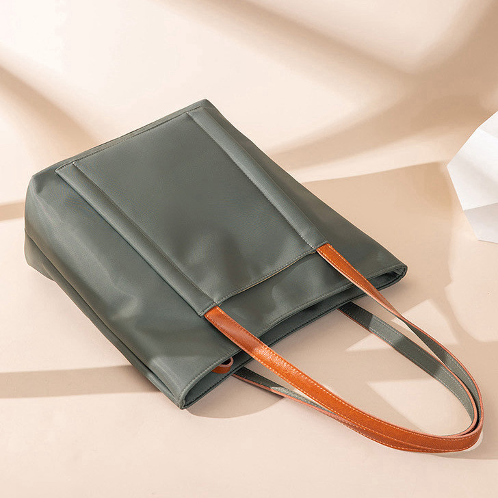With cowhide Oxford cloth large bag commuting vertical nylon shoulder bag women's canvas file handbag literary tote bag