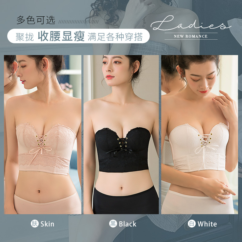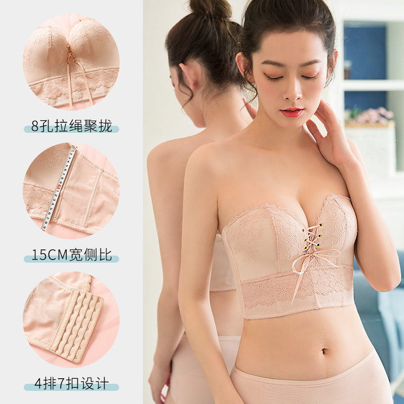 No shoulder strap bra small breasts to woo non-slip wedding dresses Private wrapping bra Breasted Stealth Underwear Breast stickup women