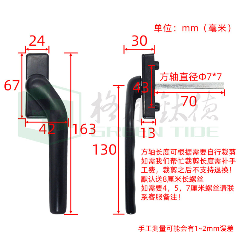 Aluminum alloy door and window transmission handle crooked handle plastic swing door window bending handle handle inside open flat handle open outside