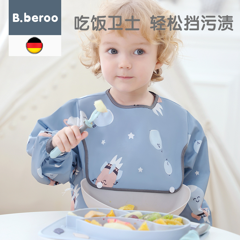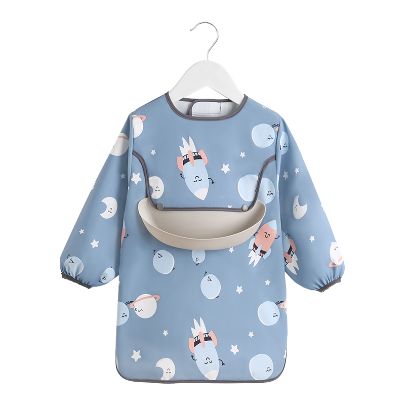 Children's bib spring and autumn long-sleeved boy reverse wear outside wear cute female baby bib Waterproof eating artifact bib