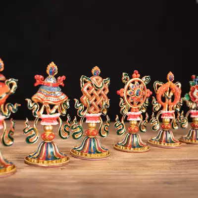 Tibetan Buddhism Nepal pure copper eight auspicious ornaments Buddha Hall home worship blessing tribute auspicious eight treasures in front of the Buddha