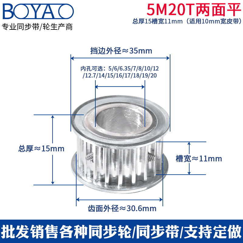 Two sides flat 5M20 teeth T groove width 11 AF type aluminium alloy synchronous wheel synchronous pulley hole 5-20 optional