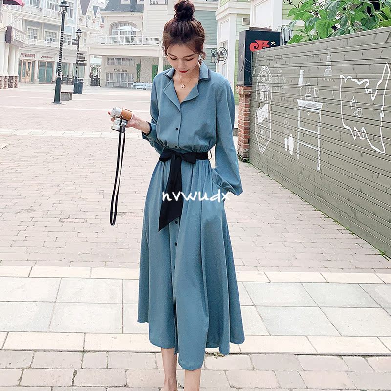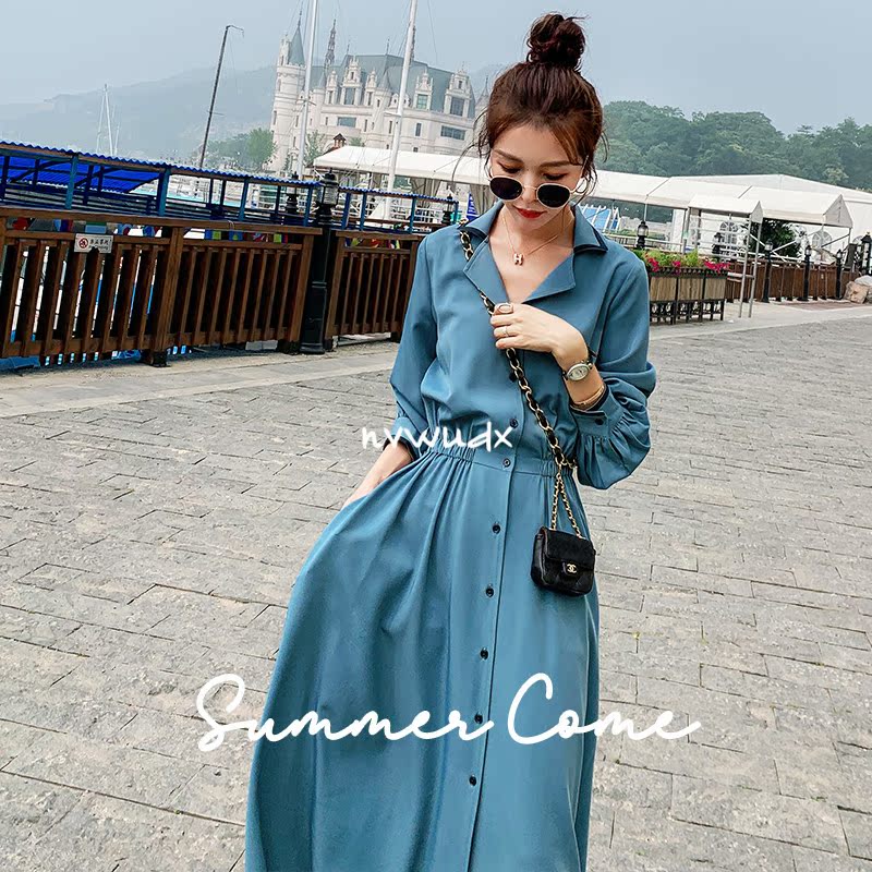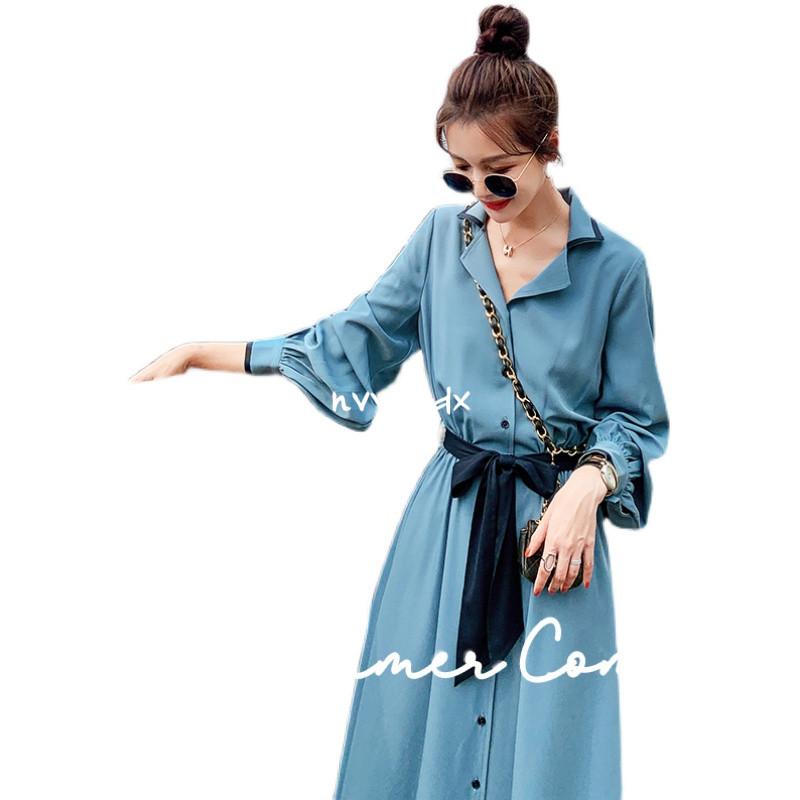 sandro Duffy foreign dress lady temperament Atmospheric Long Version 2021 Spring Festival High-end Cashew's waist and body collar woman