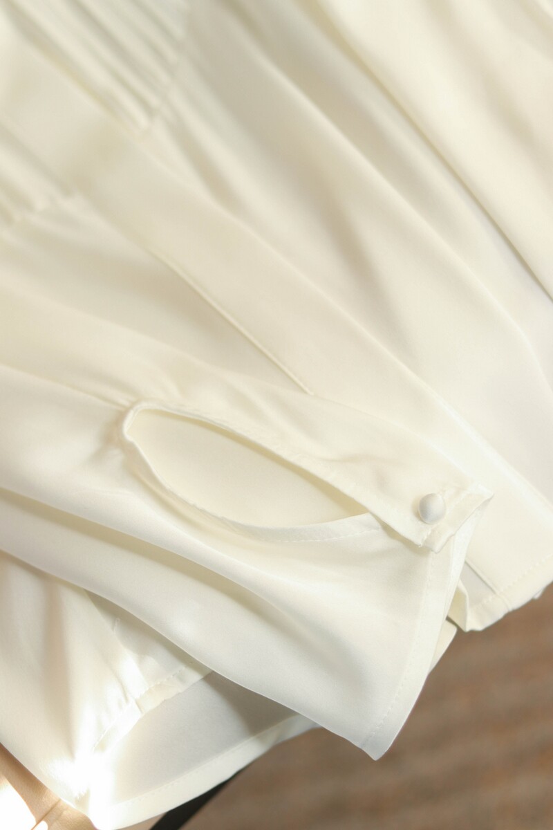 Spot high segment early spring silk private clothes ~ JI simple style exquisite rice tank pleated loose shoulder white shirt ME508