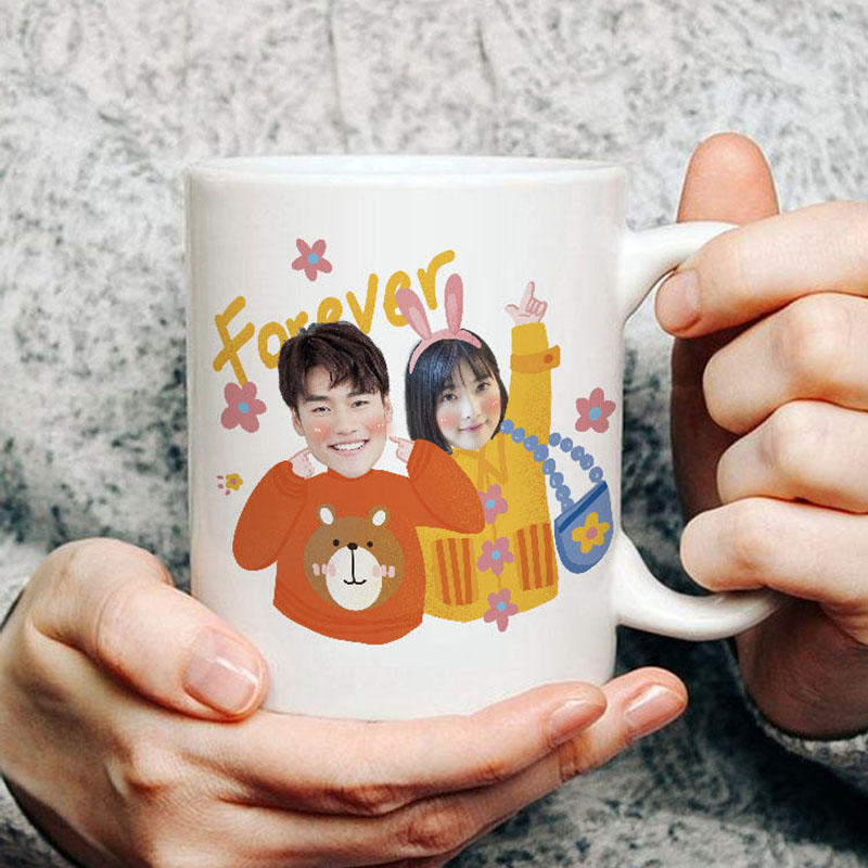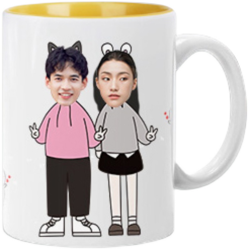 White custom mug color custom mark cup caring handle white mark cup cover spoon suit