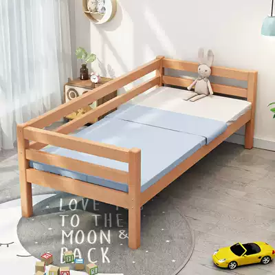 Solid wood children's bed baby bed stitching big bed with guardrail baby male and girl single bed widened Yanbian artifact