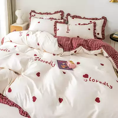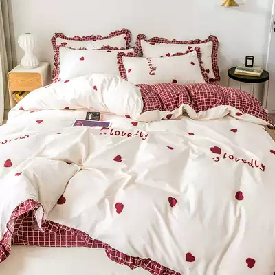 Spring and autumn pure cotton princess style four-piece Nordic style bed sheet duvet cover girl bed sheet brushed three-piece bedding