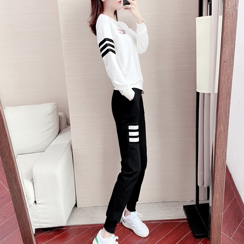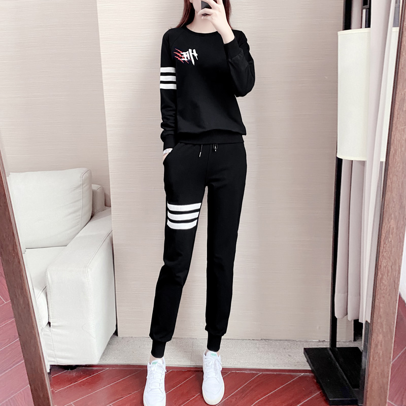 Sports Casual Suit Women Spring Autumn 2022 New Fashion Foreign Pie Trendy Round Lead Long Sleeve Thick Cotton T Running Two sets