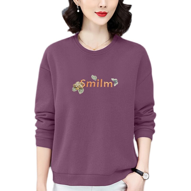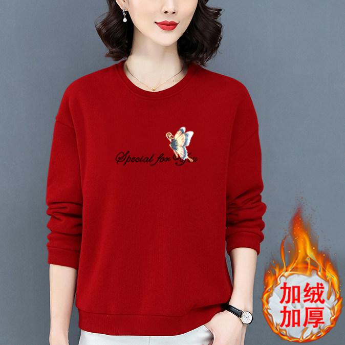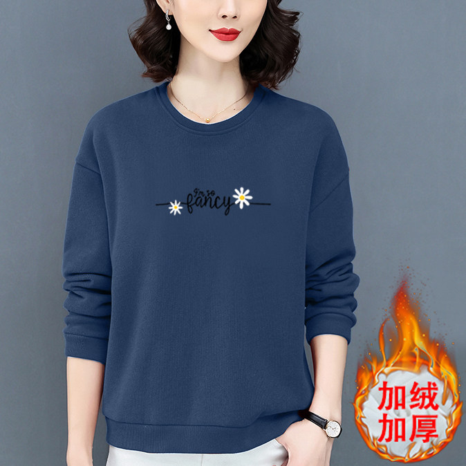 2022 new long-sleeved thick cotton T women's autumn and winter plus velvet thick pullover round neck ladies spring large size loose coat tide