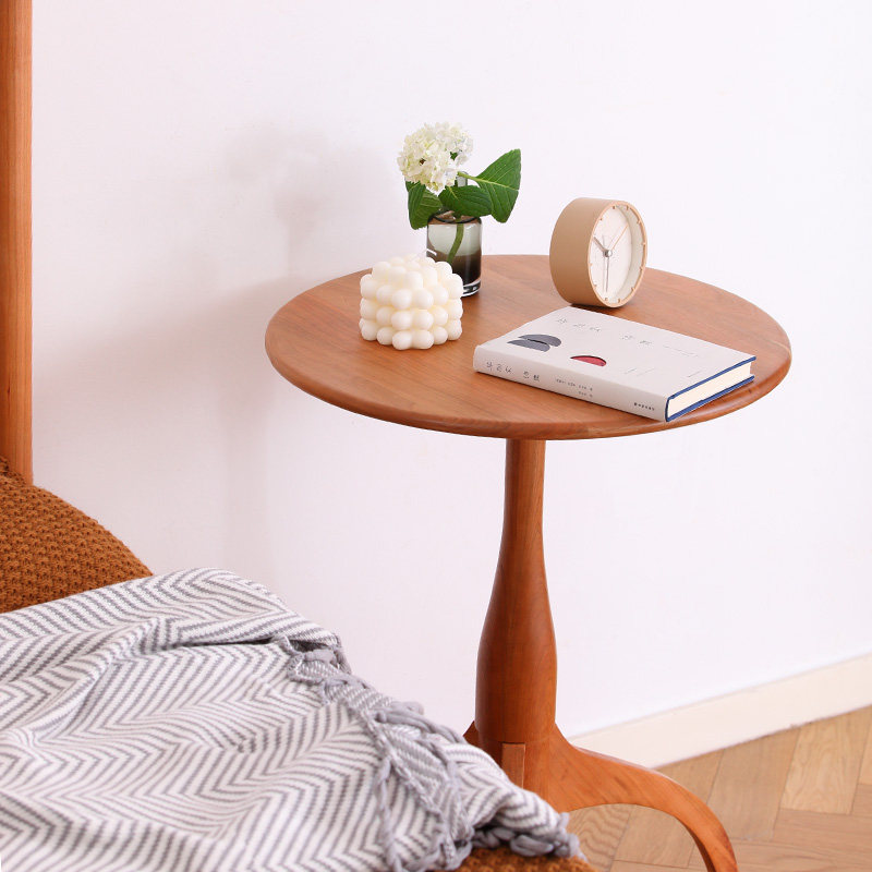 Senzhi Nordic solid wood sofa side table mini coffee table home small apartment corner table cherry wood small round table bedside table