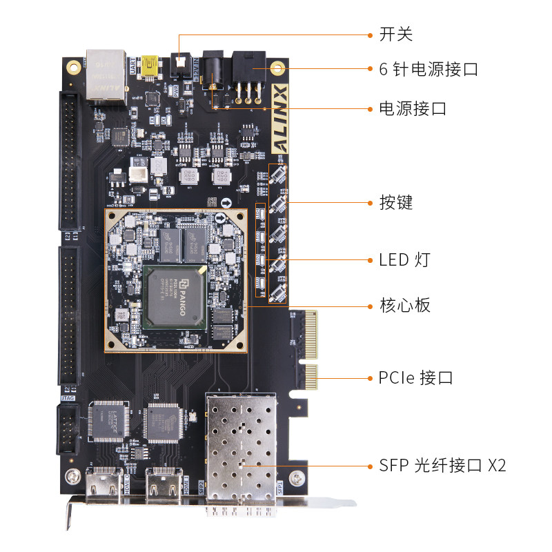 Domestic FPGA development board ALINX Unigroup Tongchuang Logos2 series PG2L100H PCIe optical fiber