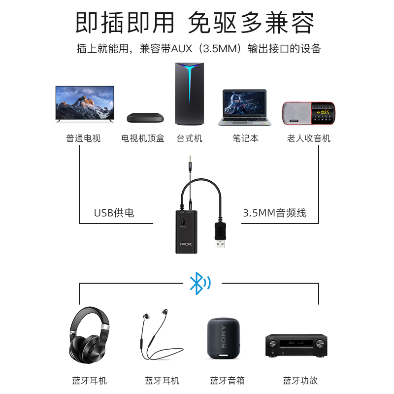 PX Chase TV Bluetooth Transmitter Audio Transwireless Aux Projector Notebook Desktop Computer Bluetooth Accessories 5 0 Multi-functional general PC Free Drive Module Receive Signal
