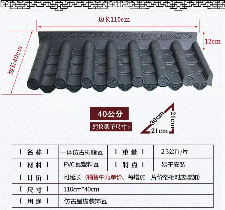 One-piece antique tile resin tile medium-style eaves roof decoration small green tile ancient door tile plastic wall tile