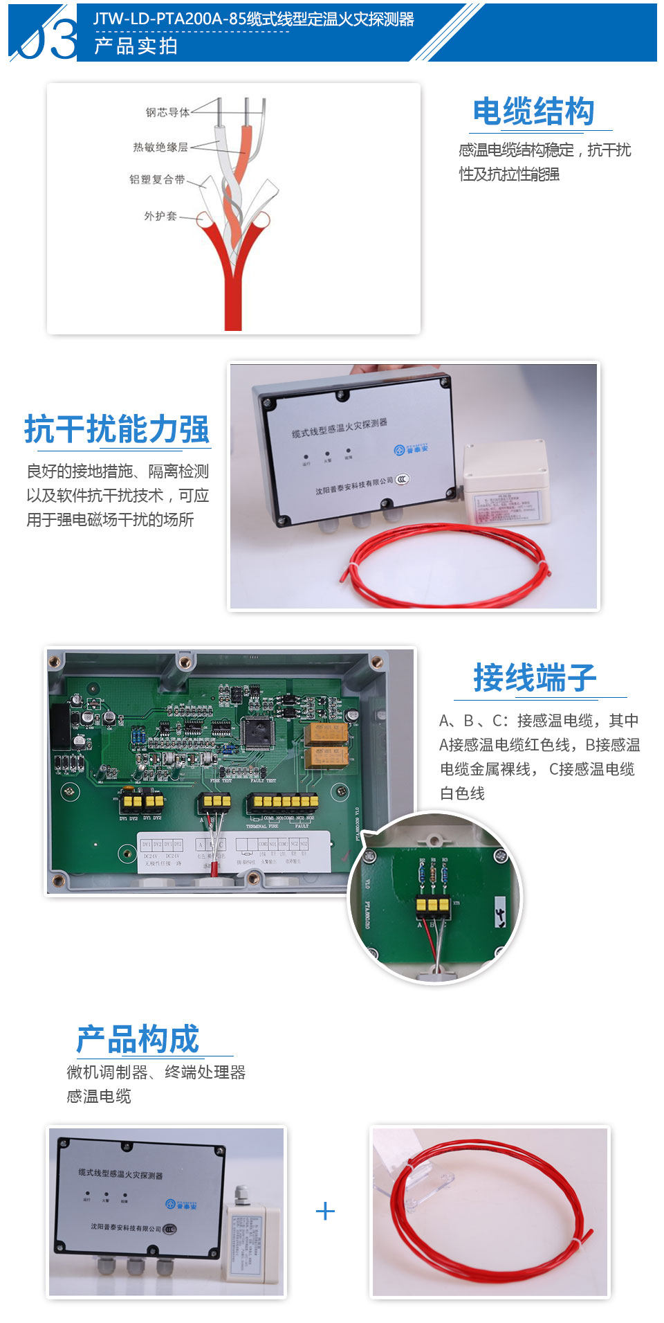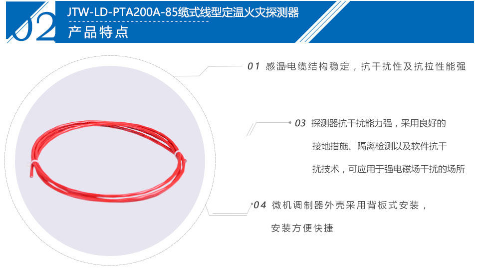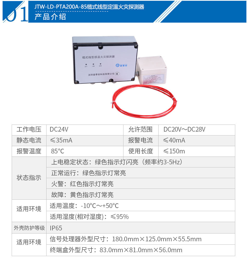 JTW-LD-PTA200A Cable Type Fixed Temperature Fire Detector Temperature Sensing Cable Signal Processor Terminal Box