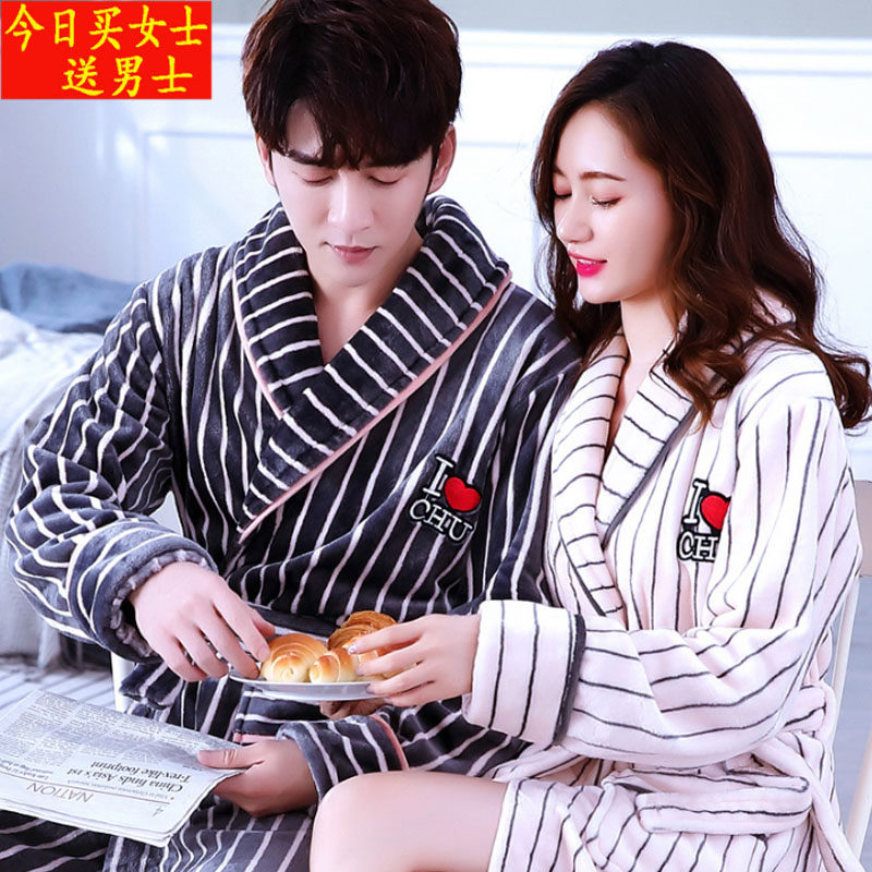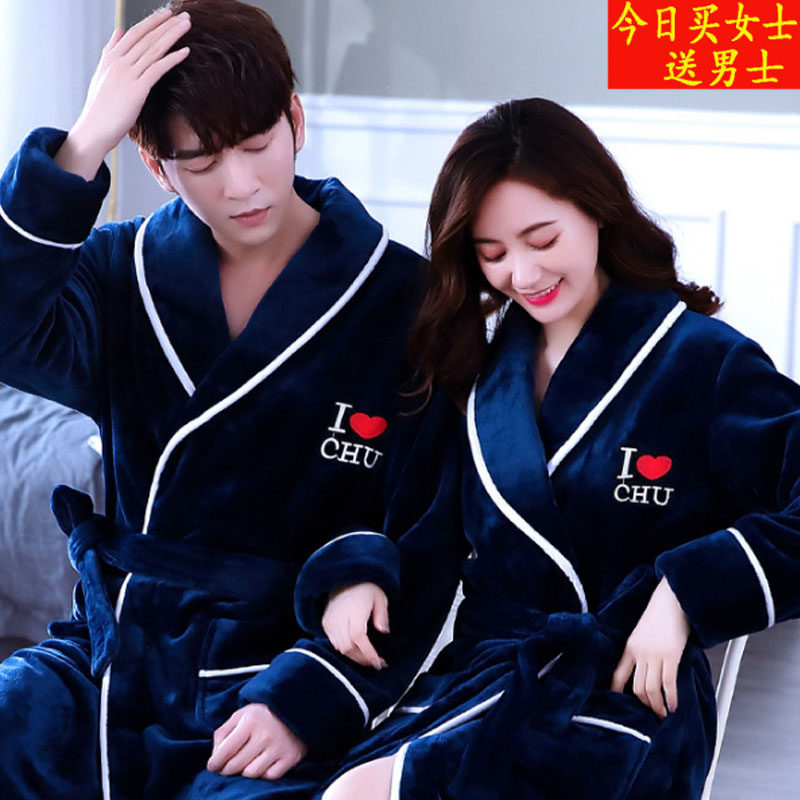 Couple sleeping clothes autumn and winter money couple sexy sleeping robes a couple of spring and autumn 2021 new net red and cute bathrobe coral suede