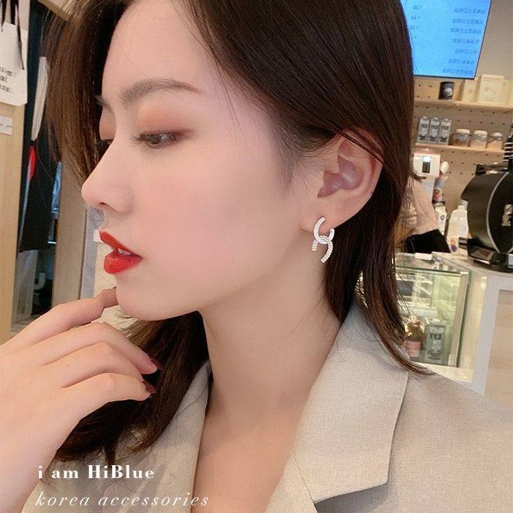 Korean High Sensation Double C Earrings Pure Silver Needle Ear Needle Method Temperament Net Red Ear Pendant Pearl Earrings 2021 New