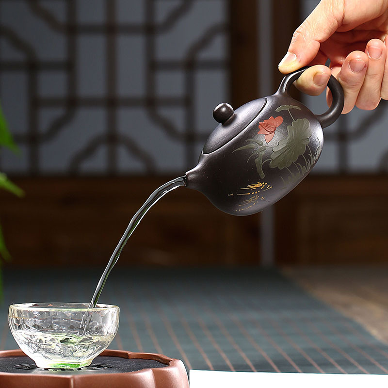 Yixing purple sand Xicha Tea Machine original black mud handmade pot of the Kingdom of Wan Yunxi Xixi Tea pot ball hole 150cc