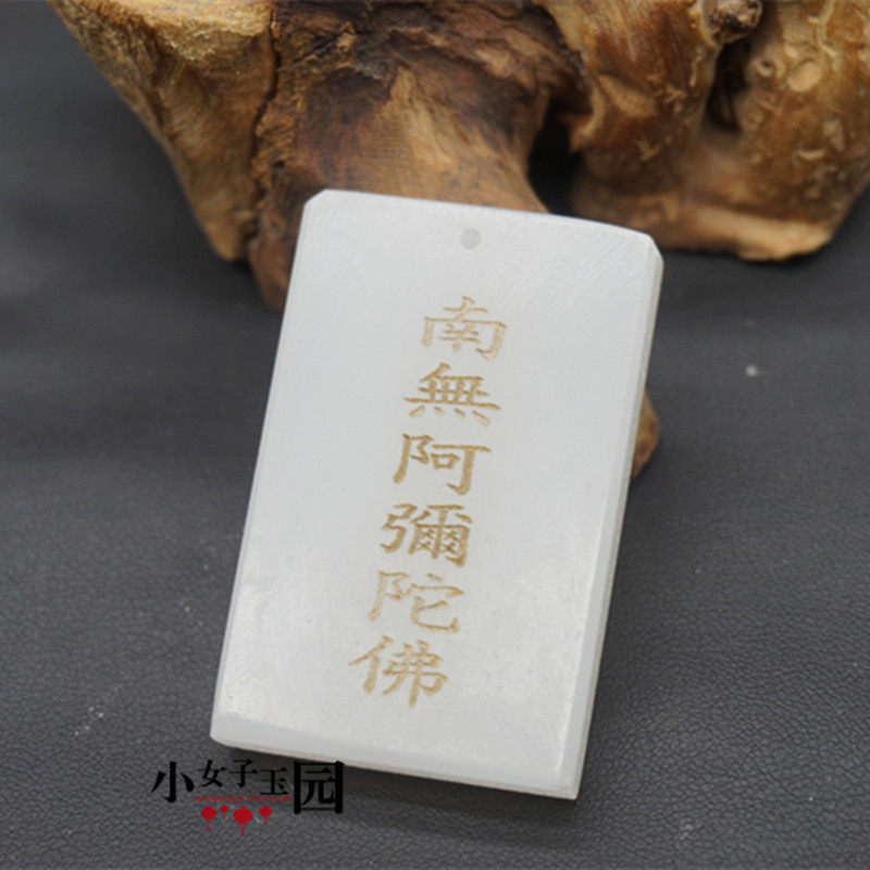 Afghan Jade Buddha Brand Pendant Pendant White Jade South No Amitabha Buddha Peace Card Jade Plate Jade Pendant Men's and Women's Neck Ornament