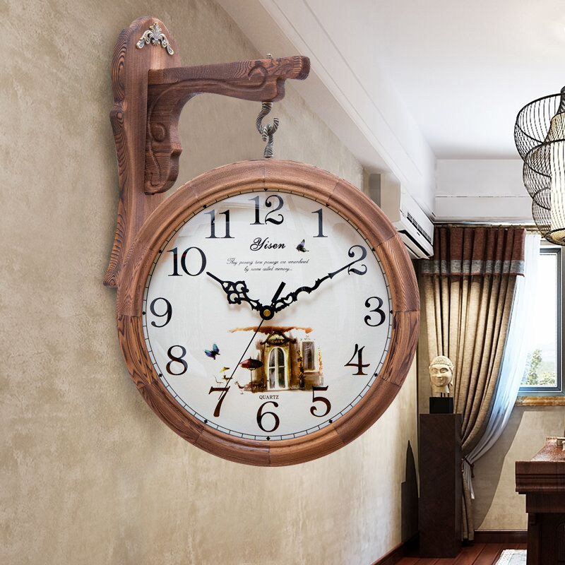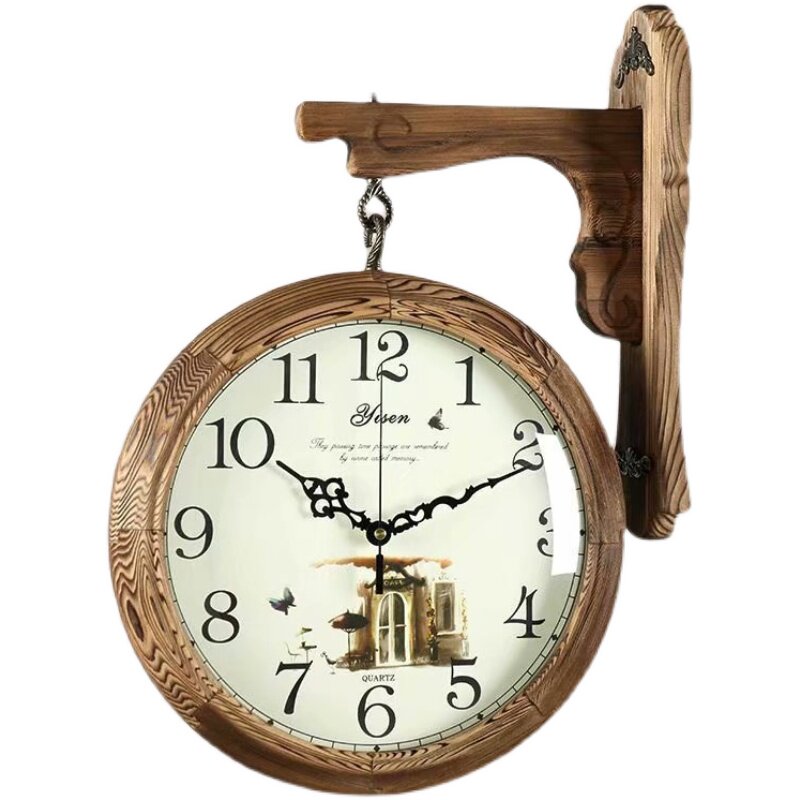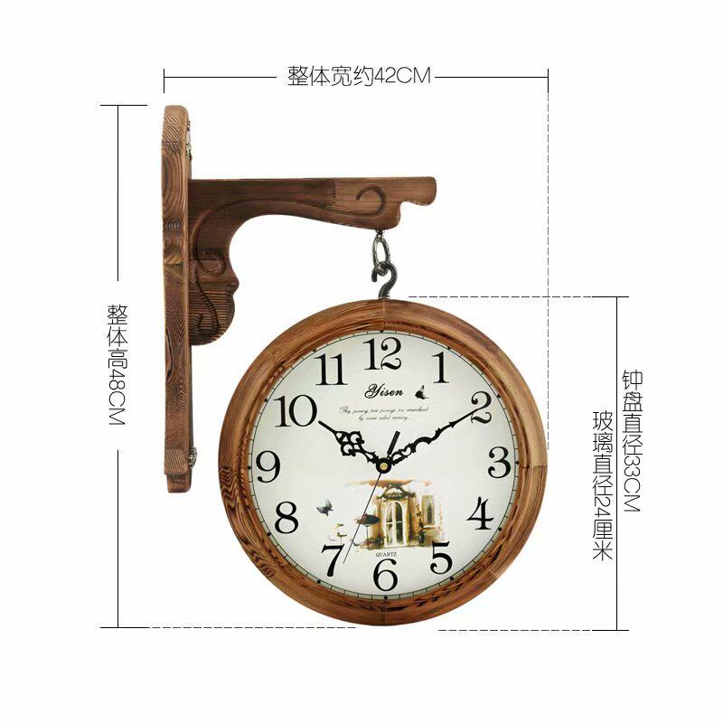 Fragrant camphor wood double-sided hanging clock modern minimalist solid wood clock living room European style home mute retro quartz clock