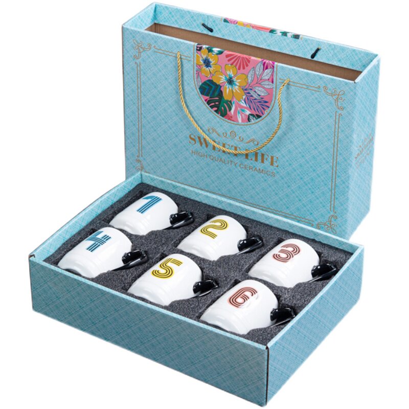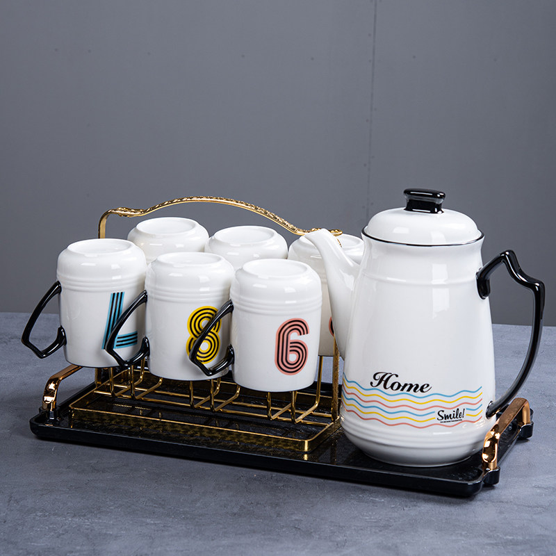 Cups 12 color digital cups living room water cups with rack with plate Nordic household teapot water set 4 breakfast cups