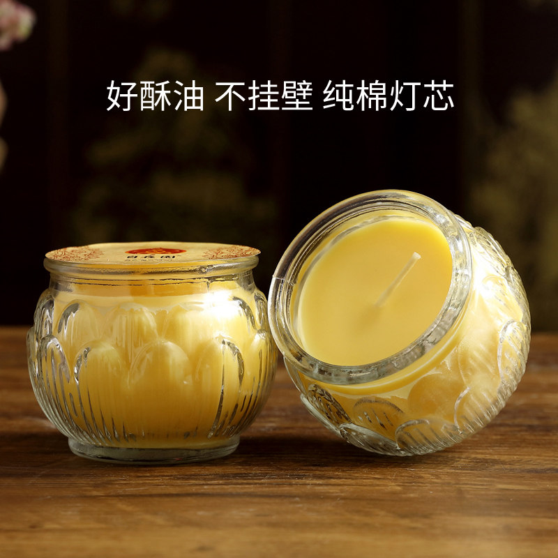 From the garden ghee oil lamp 24 hours for the Buddha lamp Home Smoke-free Long Ming Buddha front for the lamp flat mouth Lotus ghee candle