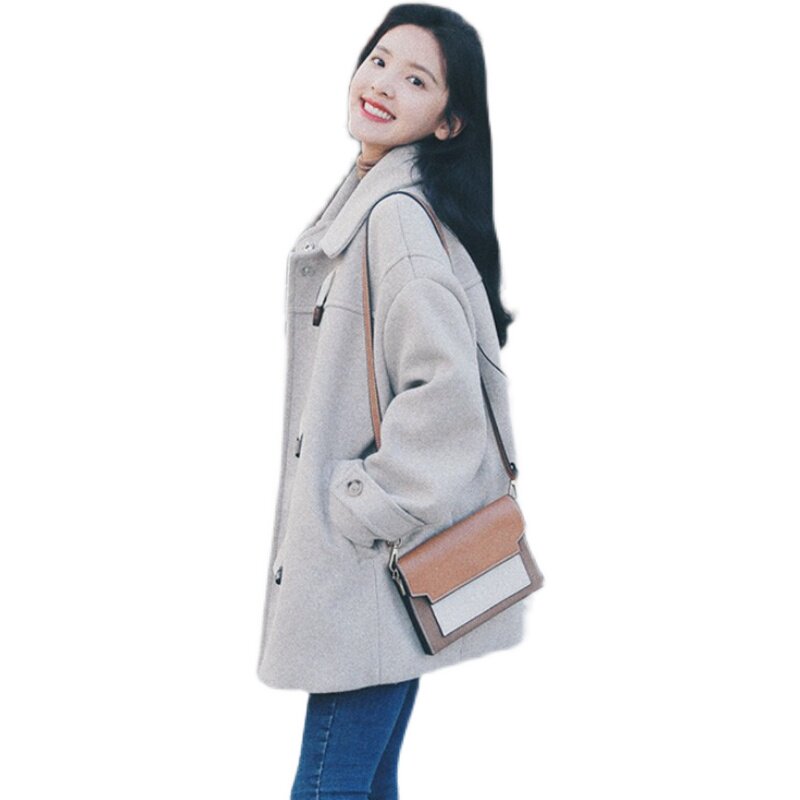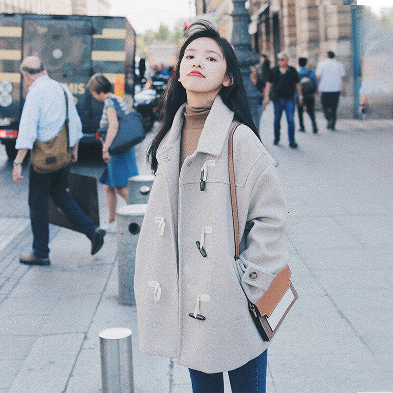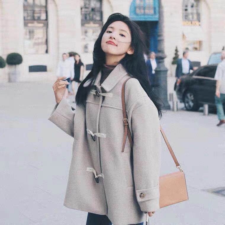 French maje winter new horn buckle loose large coat with long version of small fur coats women