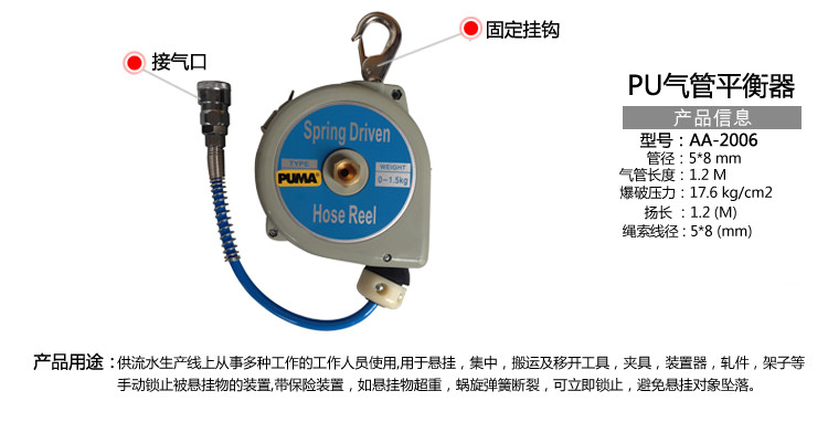 Jumba PUMA AA-2006 PU tube balancer tracheobalancer gas drum automatic telescopic reel pipe