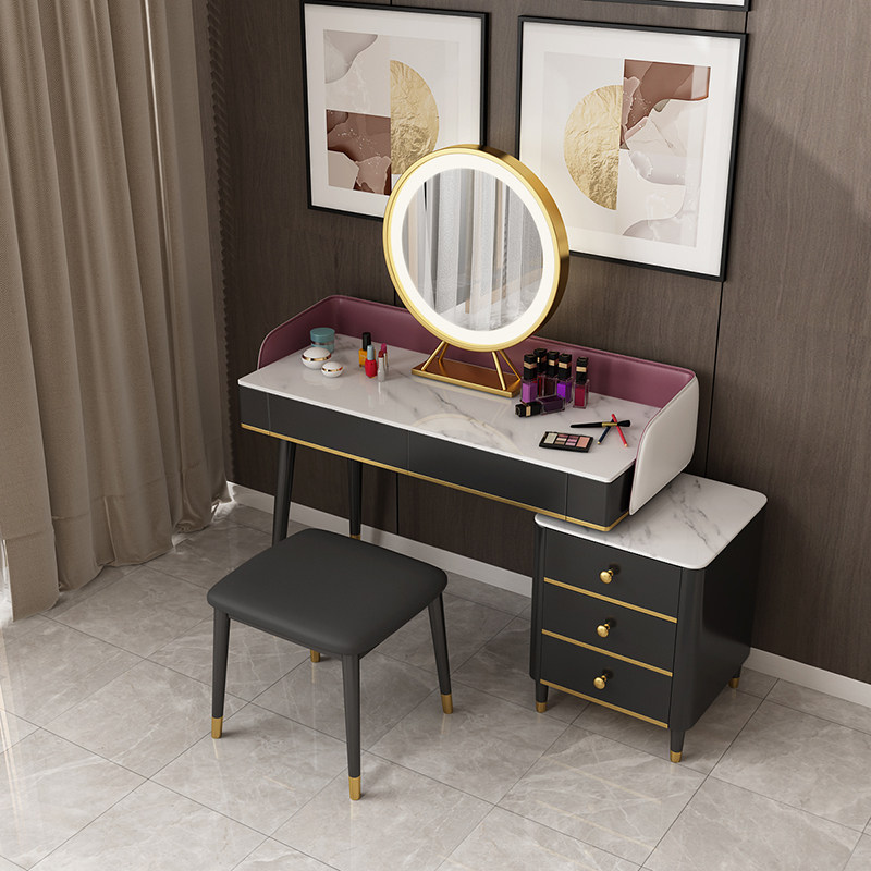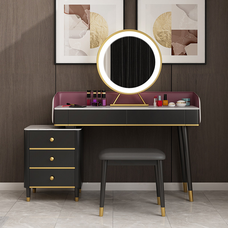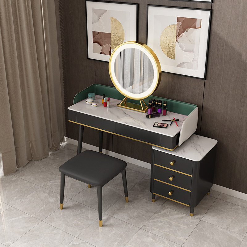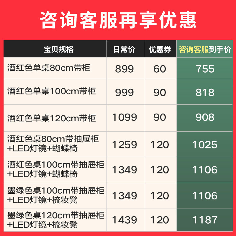 Dark green table 120cm with drawer cabinet LED light mirror Butterfly chair Dark green table 100cm with drawer cabinet LED light mirror Make-up chair Wine red table 100cm with drawer