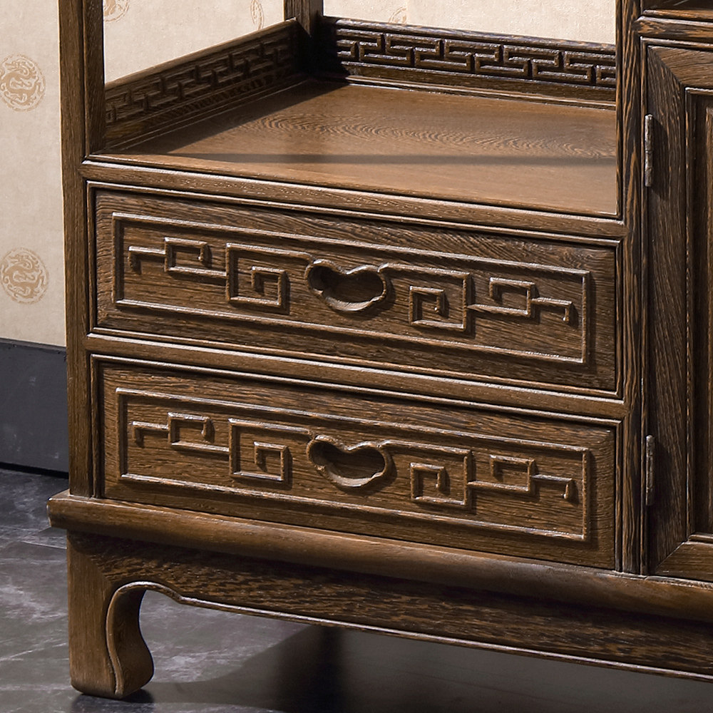 Chicken Wings Wood Carved Flower Tea Water Cabinet