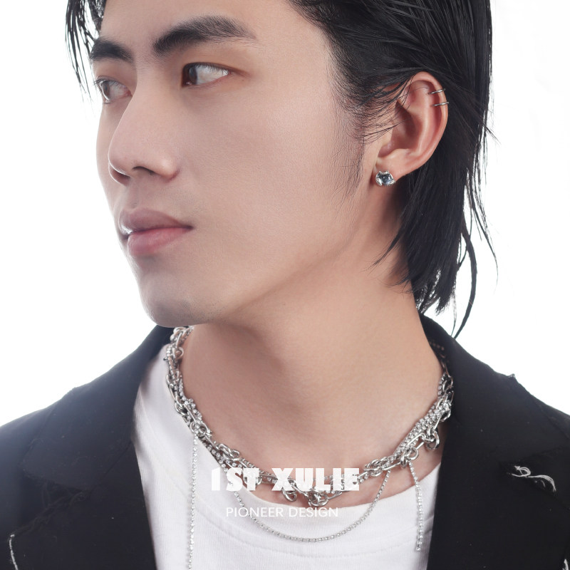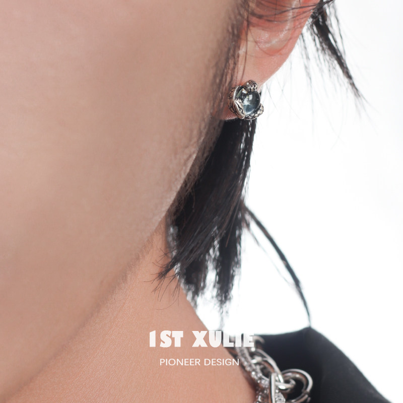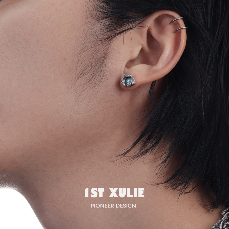 1ST XULIE925 pure silver earshot small crowdsourced design made of old serpentine dark black lukewarm wind male and female earrings